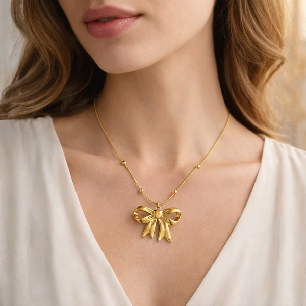 Anti Tarnish Dainty Bow Sparkle Necklace 🎀
