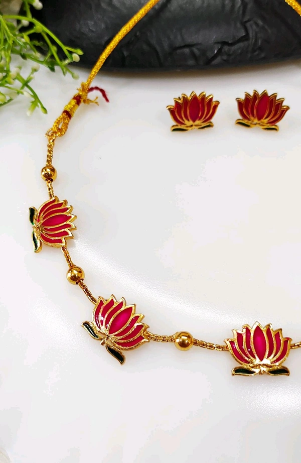 Beautiful Rani pink Lotus Choker Set