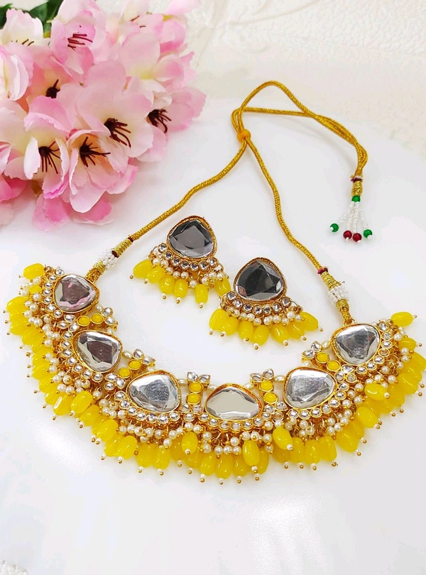 Beautiful Yellow Kundan Necklace Set