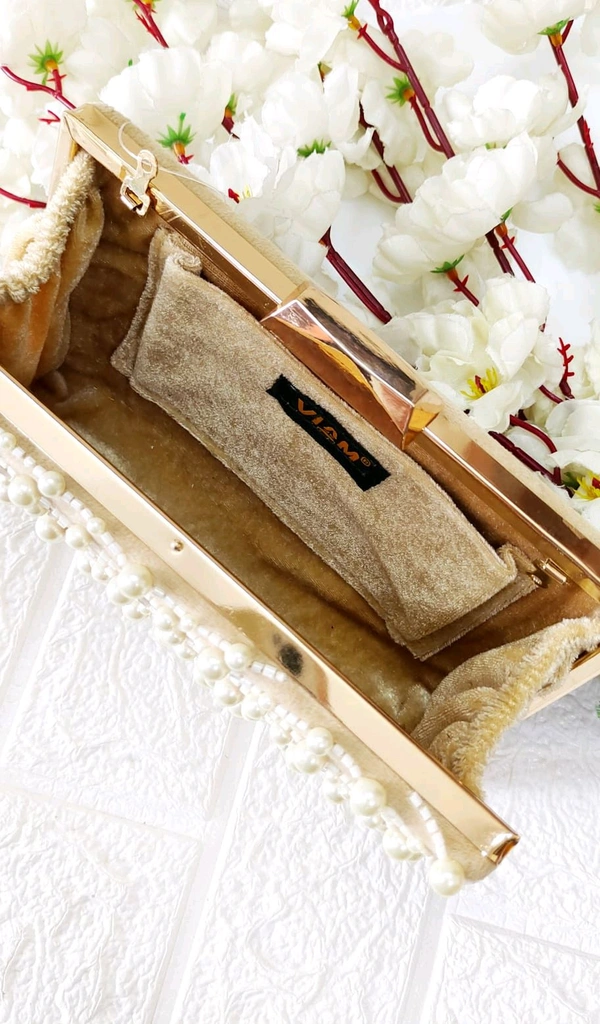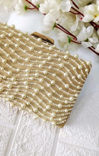Classy Pearl Festive Clutch - Beige