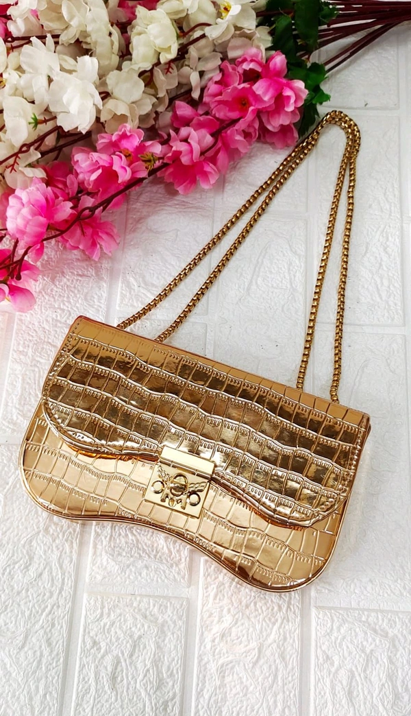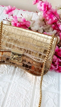 Croco Party Box Sling Bag - Golden