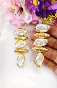 Designer Brass Doozy Stone Earrings