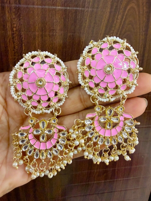 These handcrafted Kundan danglers with meenakari detailing & pearl drops are made to shine at every festive moment 💖