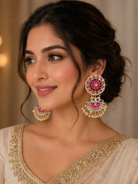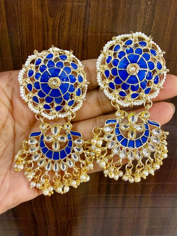 These handcrafted Kundan danglers with meenakari detailing & pearl drops are made to shine at every festive moment 💖