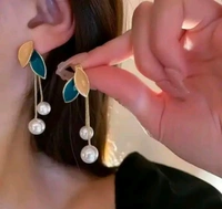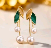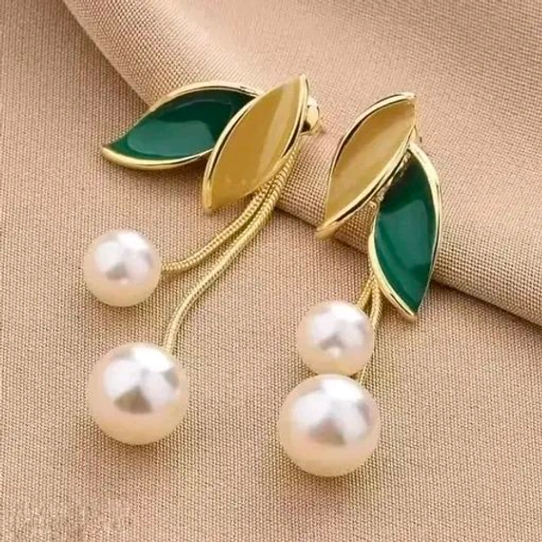 Korean Stylish Leaf & Pearl Danglers