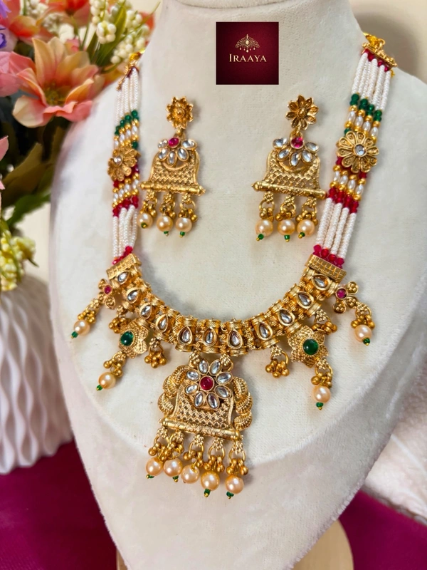 Maharani Gulnaar is crafted with intricate kundan artistry, layers of delicate pearl beads, and regal meenakari hues — echoing the grandeur of palace heirlooms 👑💫
