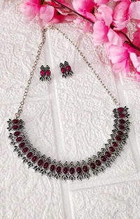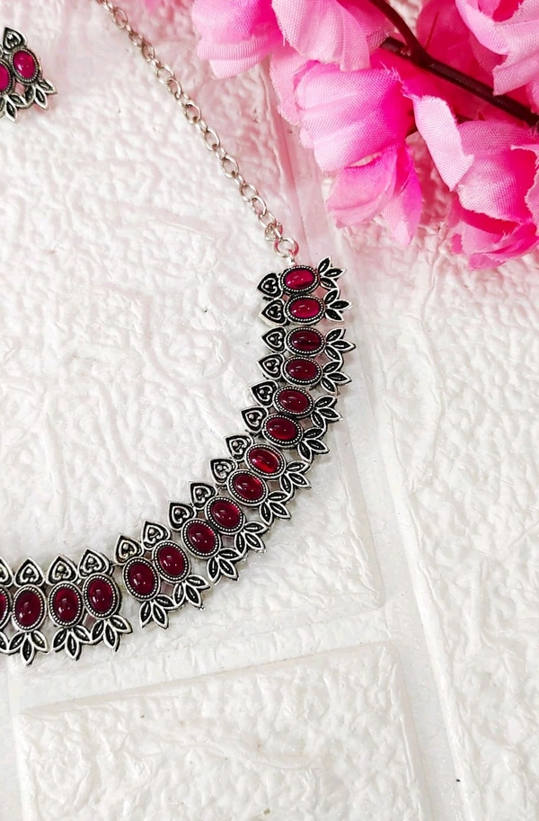 Maroon Oxidized Choker Set