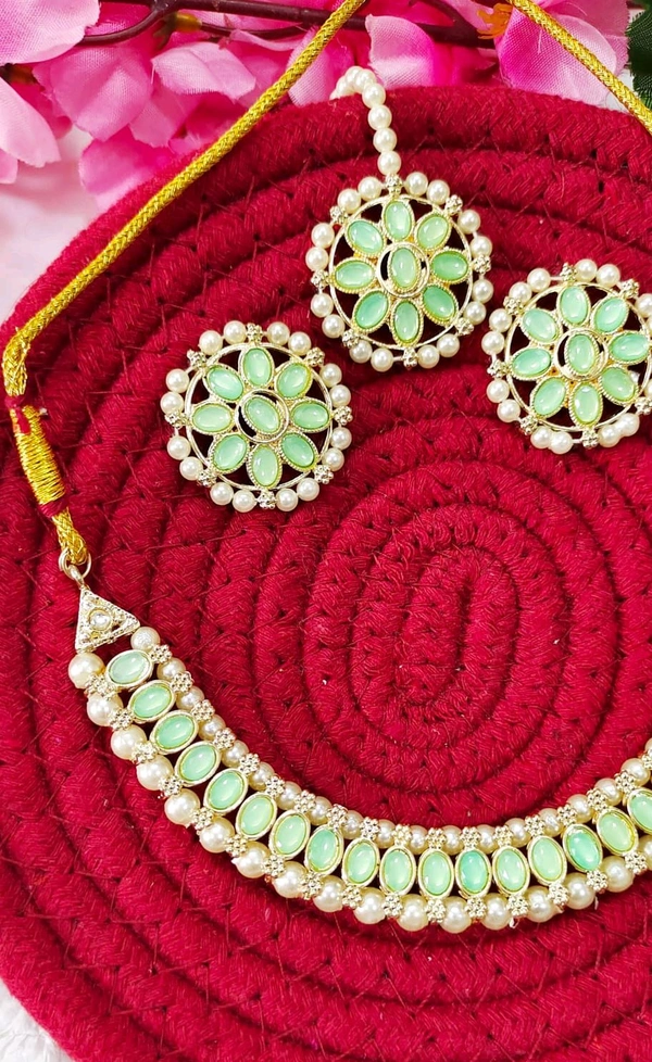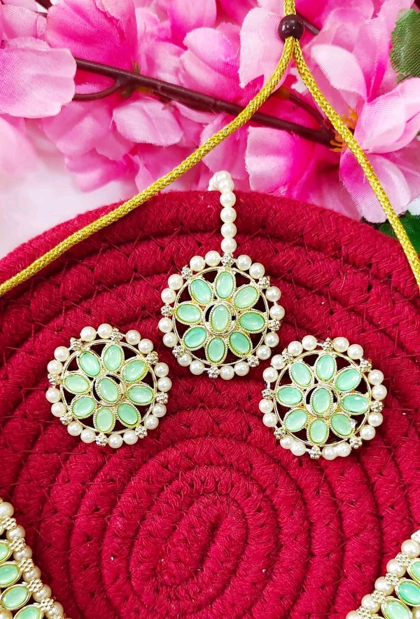 Pastel Green Kundan Necklace & Mangtika Set