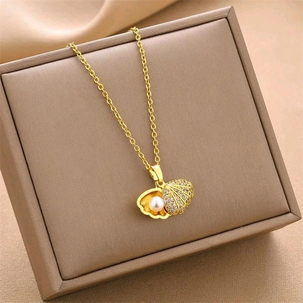 Sea Shell Pearl Pendant Stainless Steel Chain