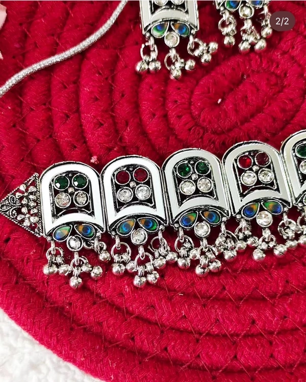 This mirror-accented oxidised choker set is designed to steal every glance.