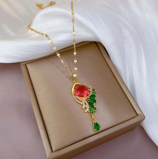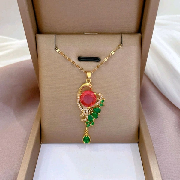 Stunning Ruby Red Peacock Pendant Chain