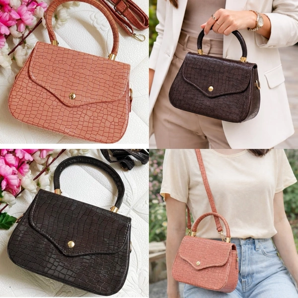 Stylish Croco Pattern Sling Bag - Black