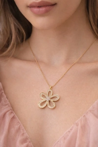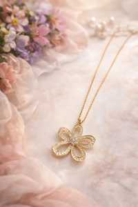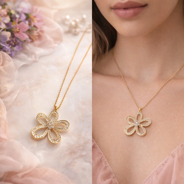 *Stylish Golden Bloom Crystal Flower Pendant Necklace* 😍