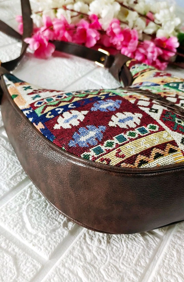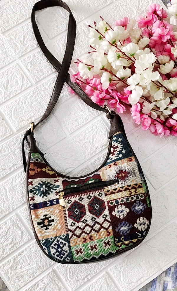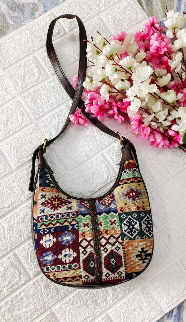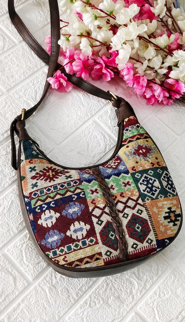 Stylish jacquard Baguette/Sling Bag