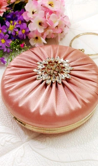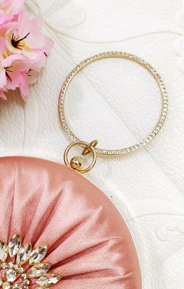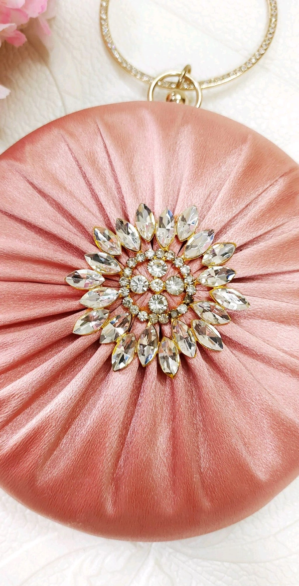 Stylish Quirky Satin Round Clutch.. Rosegold