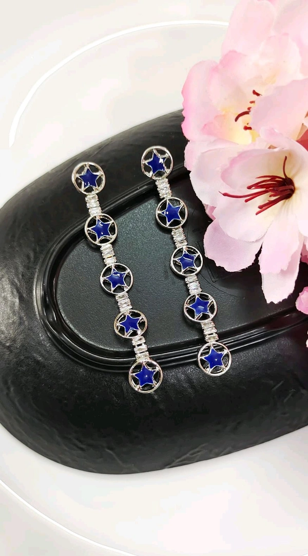 Stylish Silver Star Long Earrings